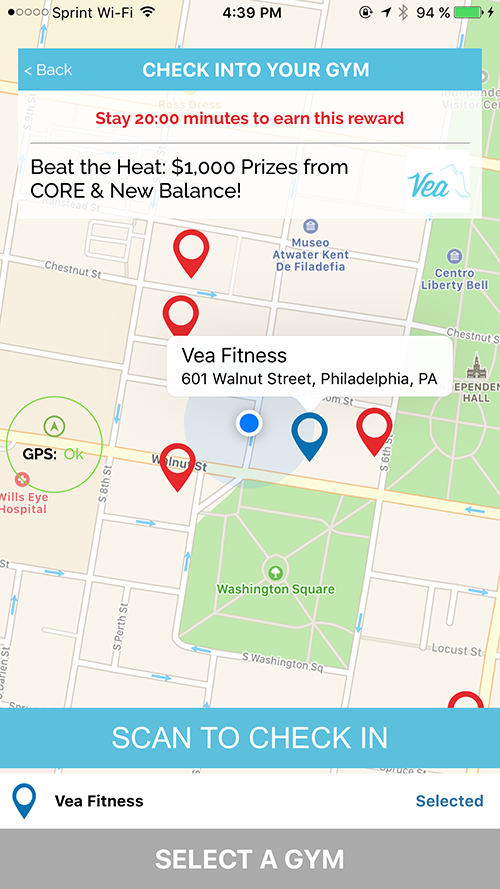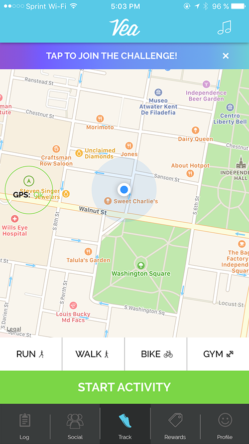 - Use the Vea app’s GPS tracking to log one-mile walks, runs, and bike rides - or check in at gyms